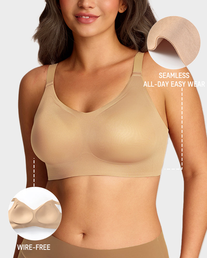 Wireless design that eliminates digging, pinching, and red marks — so you feel supported without restrained.