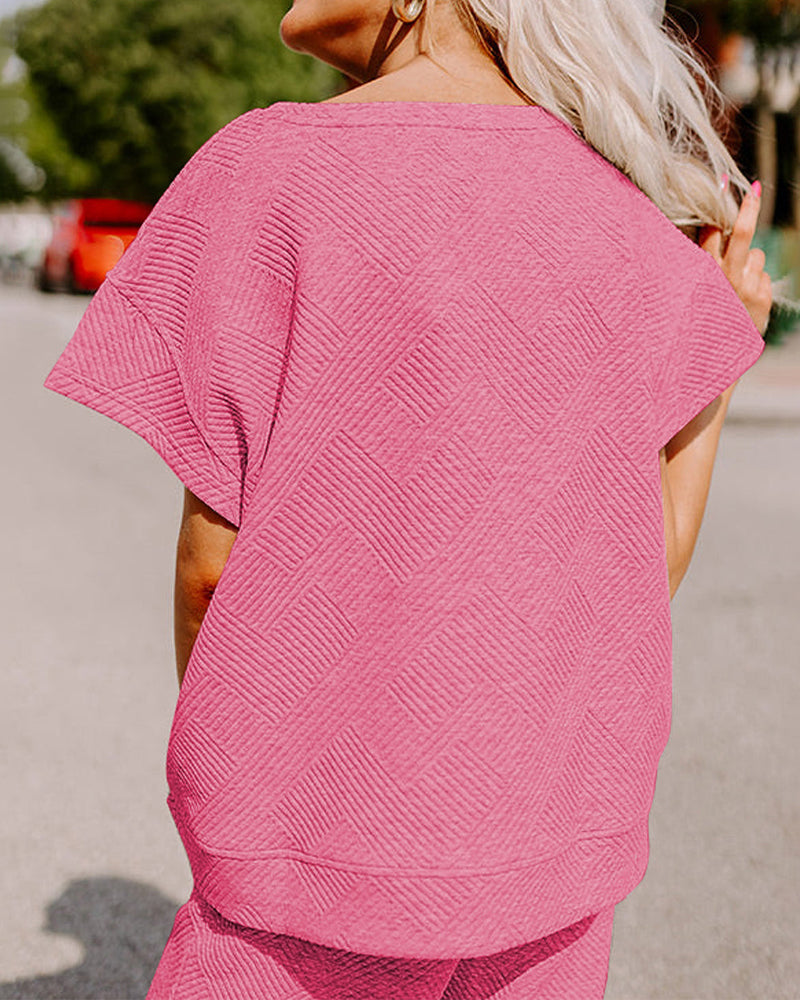 The short sleeve round neck top and cropped wide-leg pants can be worn together for a polished look or mixed and matched with your existing wardrobe. A perfect balance of casual and stylish.