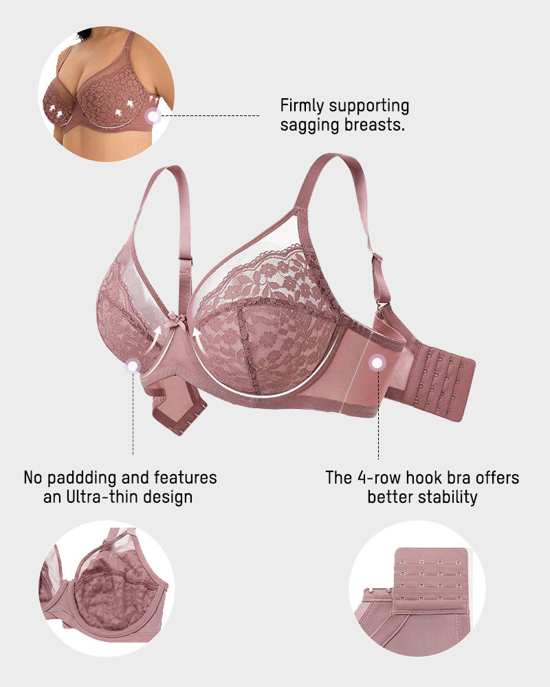 Feel instantly lifted and naturally shaped without any bulky padding. This full-coverage underwire bra hugs your curves with ultra-thin lace, creating a smooth, flattering silhouette under tees, dresses, or fitted tops—effortless confidence from morning to night.