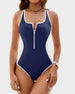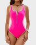 Looking for a swimsuit that smooths your waist and flatters your curves—without constant adjusting? This color block one-piece sculpts, supports, and stays secure. Just zip up and feel confident from every angle.