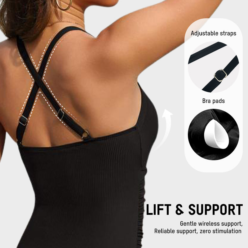 Featuring adjustable straps, crisscross back, and removable padded cups, it offers customized lift and shaping. The full-coverage design keeps everything secure—perfect for beach days, pool parties, vacations, and beyond.