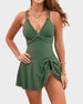 Feel confident without overexposing. This skirted one-piece swimsuit combines a flattering V-neck, adjustable drawstring skirt, and cross-back straps to shape your curves beautifully. Designed to slim the waist, lengthen the legs, and move with you—no tugging, no stress, just confidence.