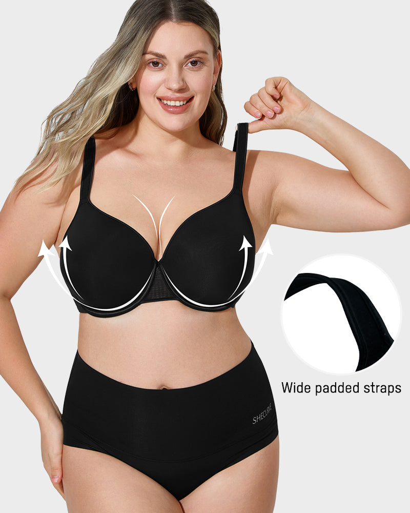 Wide padded straps relieve shoulder pressure, while underwire support lifts gently—letting you move freely and feel light all day.