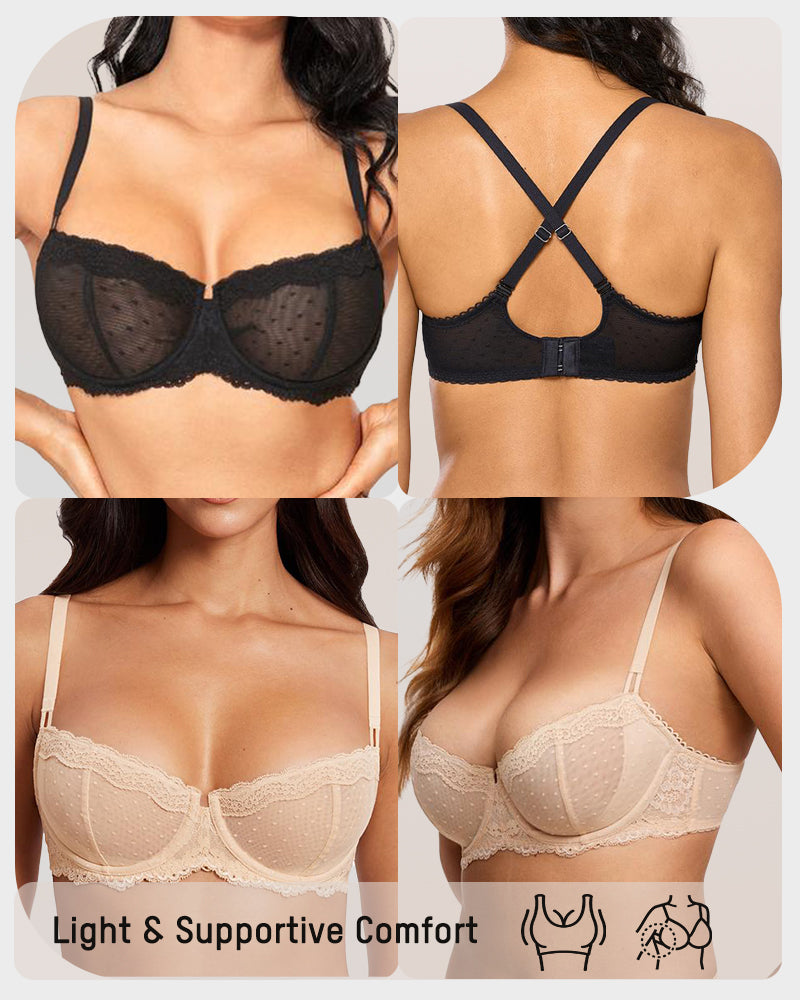The balconette neckline creates a rounded, feminine silhouette that stays invisible under wide, square, or deep-cut tops. The double-mesh cups offer shaping that enhances your curves with subtle, flattering coverage.