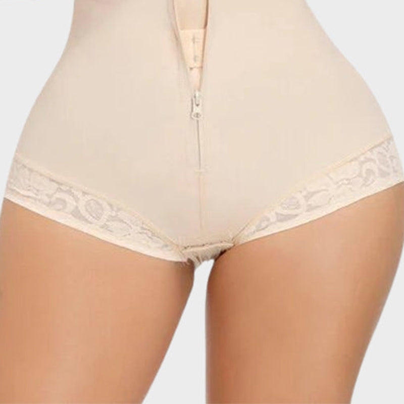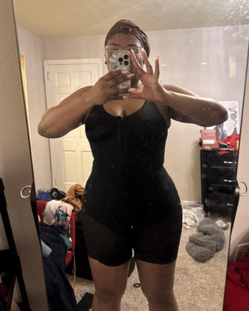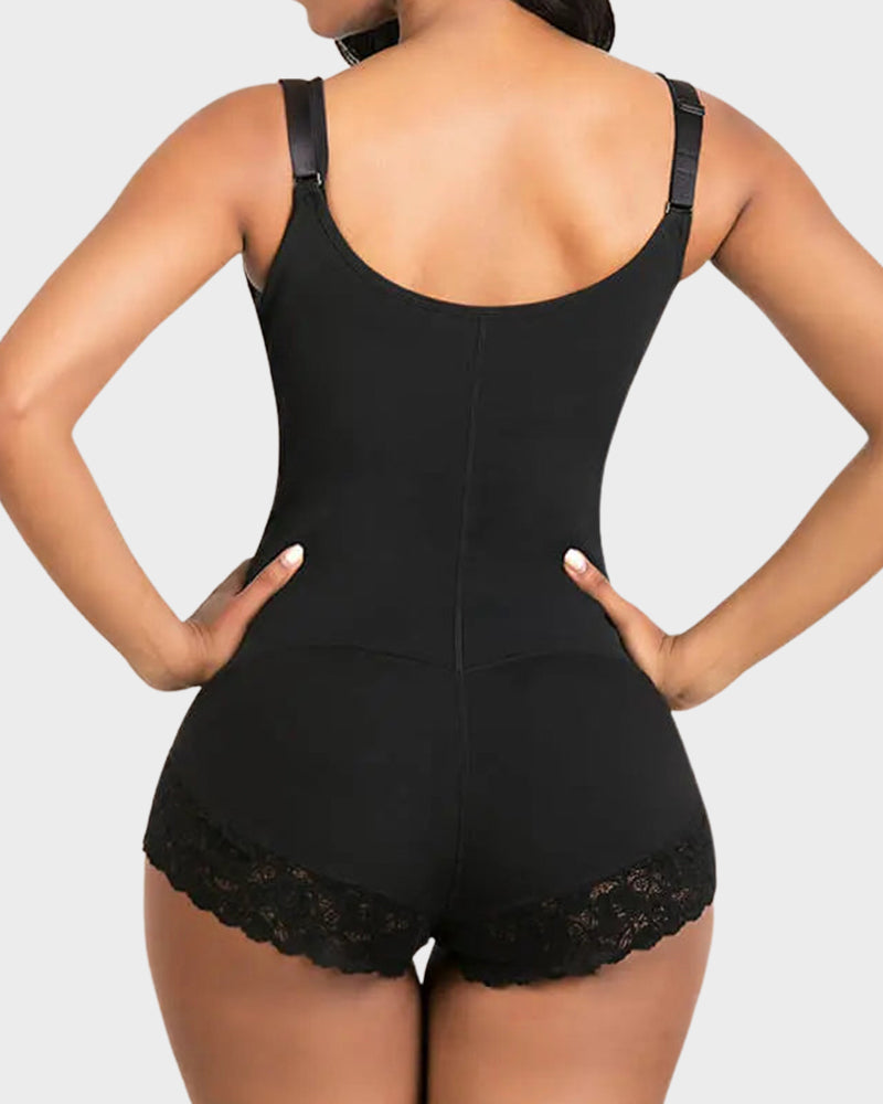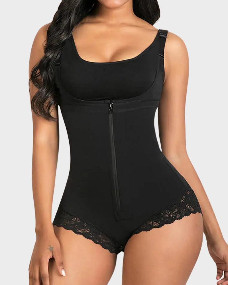 Sculpt and support in all the right places. This shapewear features a front zipper with hidden hooks, wide non-slip straps, and stretchy lace thighs that don’t roll up. The high-compression fabric targets the tummy, waist, and hips while lifting your bust for a naturally enhanced figure. Soft yet firm, it’s ideal for daily wear or postpartum recovery.