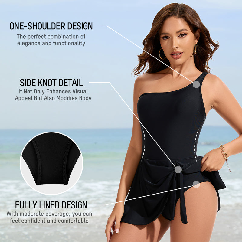 The one-shoulder style of this swimsuit combines the elegance of a swimsuit with the functionality of a pin-up one-piece, keeping you stylish and glamorous.