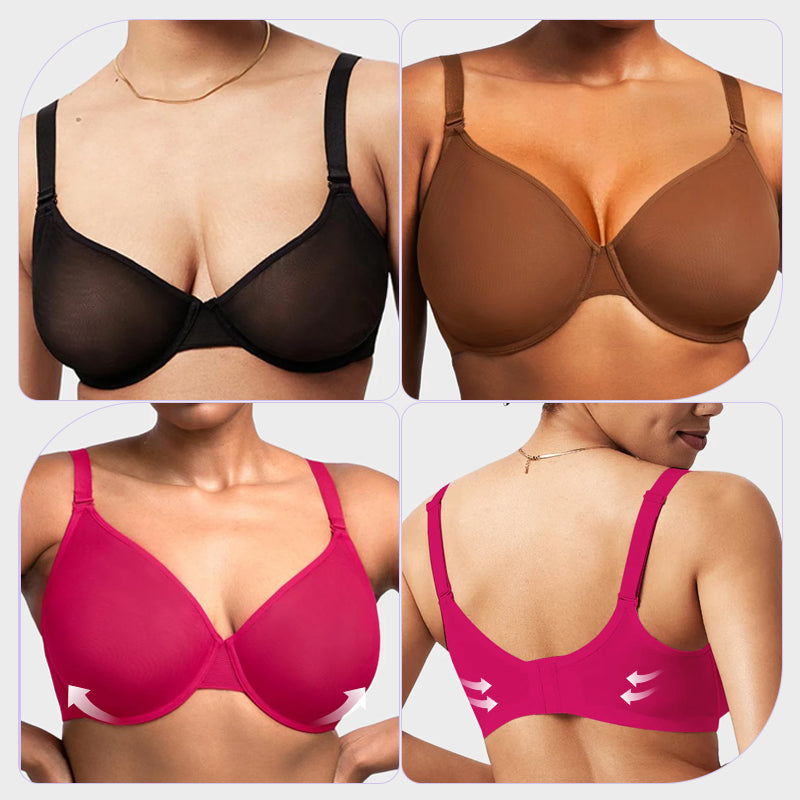 Crafted from ultra-soft sheer mesh, this unlined bra feels weightless yet secure. The flexible underwire lifts and shapes without digging in, giving you all-day confidence and everyday comfort in one.