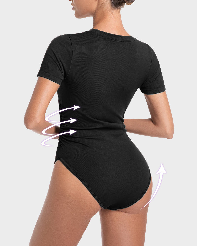 Designed for a smooth, seamless silhouette, this short-sleeve bodysuit combines body-hugging compression with a classic tee look. Wear it as shapewear or outerwear—your wardrobe just got an upgrade.