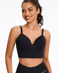 Made with buttery-soft nylon and spandex, this bra offers breathable stretch and moisture-wicking comfort. Treat your skin to a silky-soft feel—luxury that lasts from morning to night.