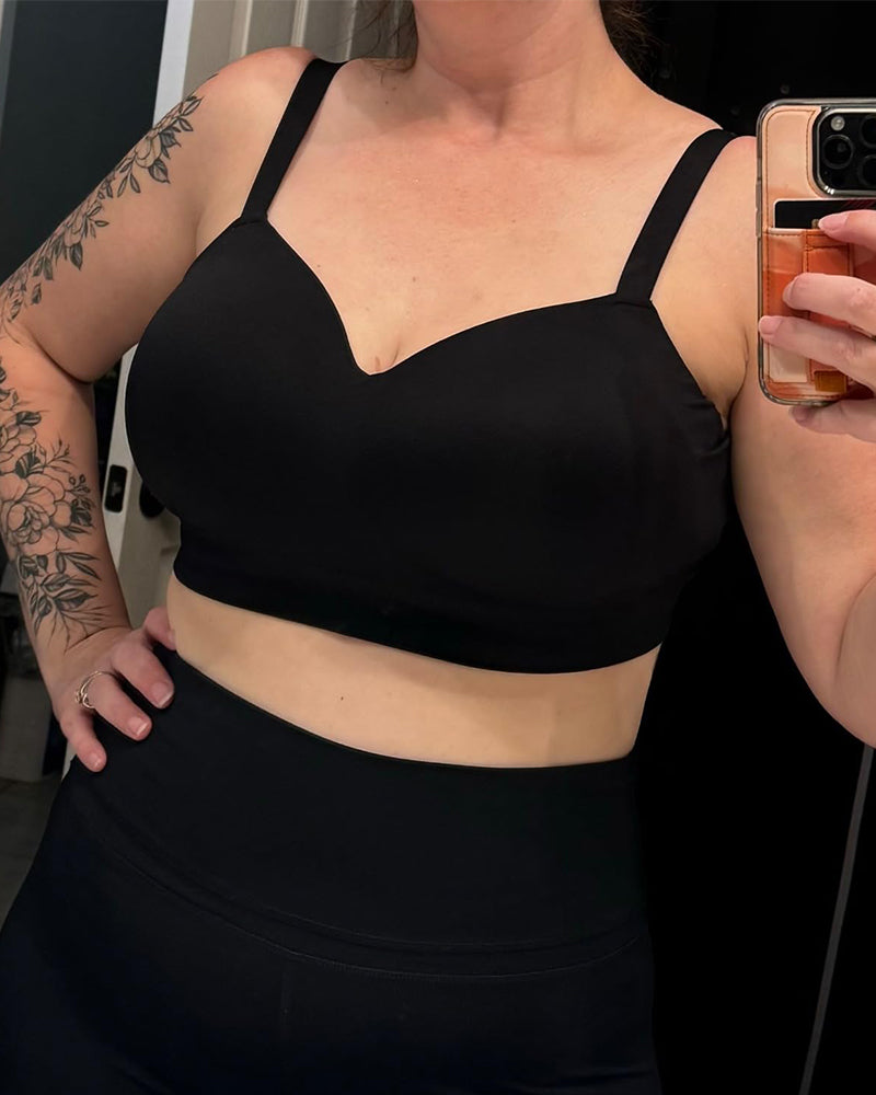"My favorite bra! Great support! Doesn’t loose its elasticity. Throw in the washer. Could wear working out if wanted."