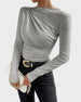Tired of basic tops that look plain and shapeless? This ruched mock neck tee is your easy way to look effortlessly stylish every day. Soft, flattering, and endlessly versatile, it hugs your body just right — from desk to dinner to weekend plans.