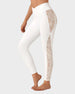 The intricate lace detailing adds a unique and stylish flair, making these leggings perfect for both workouts and casual outings.
